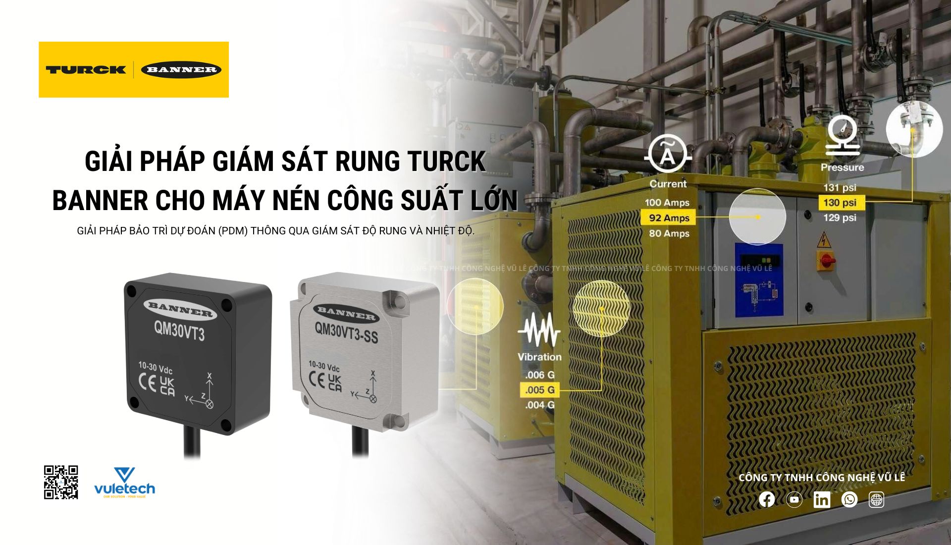 Với sự hỗ trợ của cảm biến công nghiệp và hệ thống IIoT, các nhà máy hiện nay có thể giám sát tình trạng thiết bị theo thời gian thực thông qua các tín hiệu như rung động, nhiệt độ và dòng điện. Việc thu thập và phân tích liên tục các dữ liệu này cho phép phát hiện sớm các dấu hiệu hỏng hóc, theo dõi xu hướng suy giảm của thiết bị, từ đó lập kế hoạch bảo trì chính xác hơn và giảm thiểu downtime ngoài kế hoạch. Trong đó, giám sát rung đóng vai trò trung tâm, vì đây là tín hiệu nhạy nhất đối với các lỗi cơ khí trong motor, bơm, máy nén và các thiết bị quay quan trọng trong khu Utility.